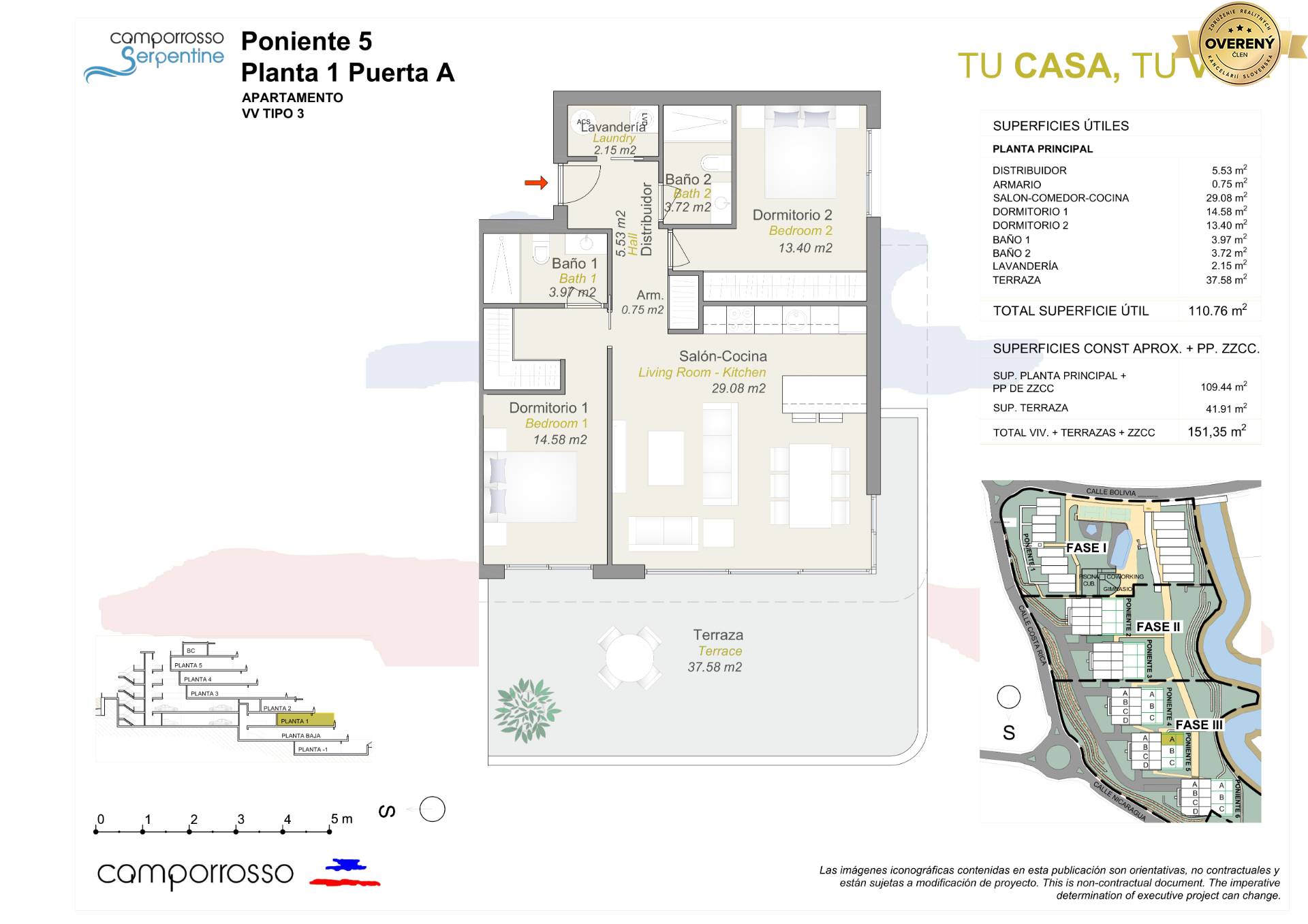 Rezidenčný komplex Camporrosso Serpentine je rozdelený na dva lineárne pozemky Poniente a Levante. Bloky sú rozdelené na 5 jednotiek s 3 podlažiami v Poniente a 8 jednotiek s 2 podlažiami v Levante. Všetky apartmány majú výhľad na more. V...