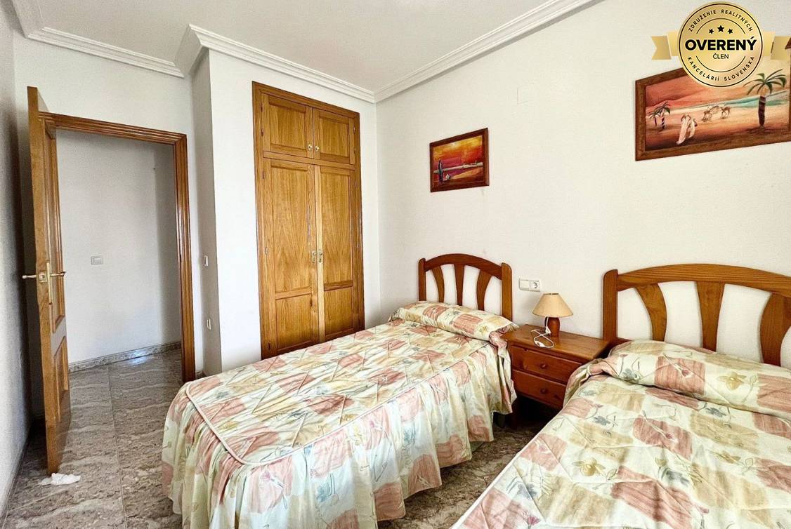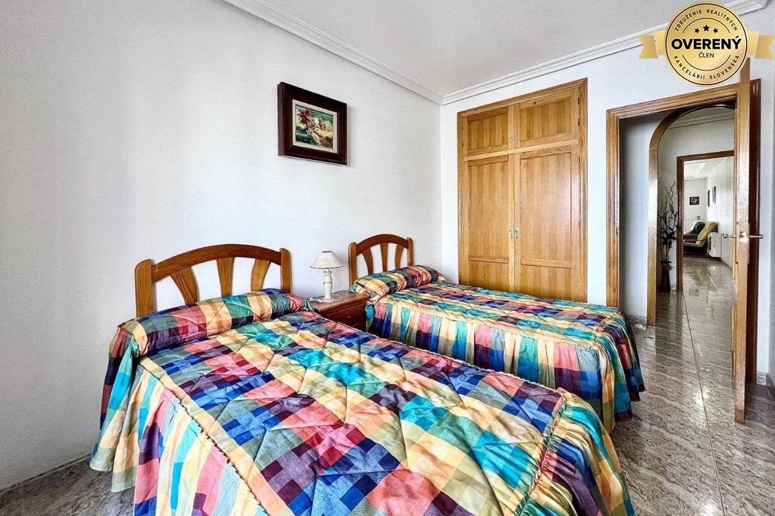Ponúkame priestranný 4 izbový byt v Torrevieje - Playa del Cura. Byt sa nachádza na 4 poschodí a má veľkorysú výmeru 125 m2. Pozostáva z obývacej izby s výstupom na balkón, samostatnej kuchyne, 3 spálni so vstavanými skriňami, 2 kúpeľní s...